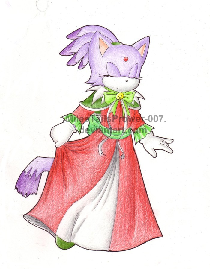 So, here's Blaze clad in Christmas clothes! I sort of mentally associate her with Christmas anyway, since I got my DS and Sonic Rush (and Nintendogs) as Christmas gifts. Since Blaze is a queen, I figured she could have a fairly fancy dress. I tried to give her a reserved smile, too. I think red looks nice on her!