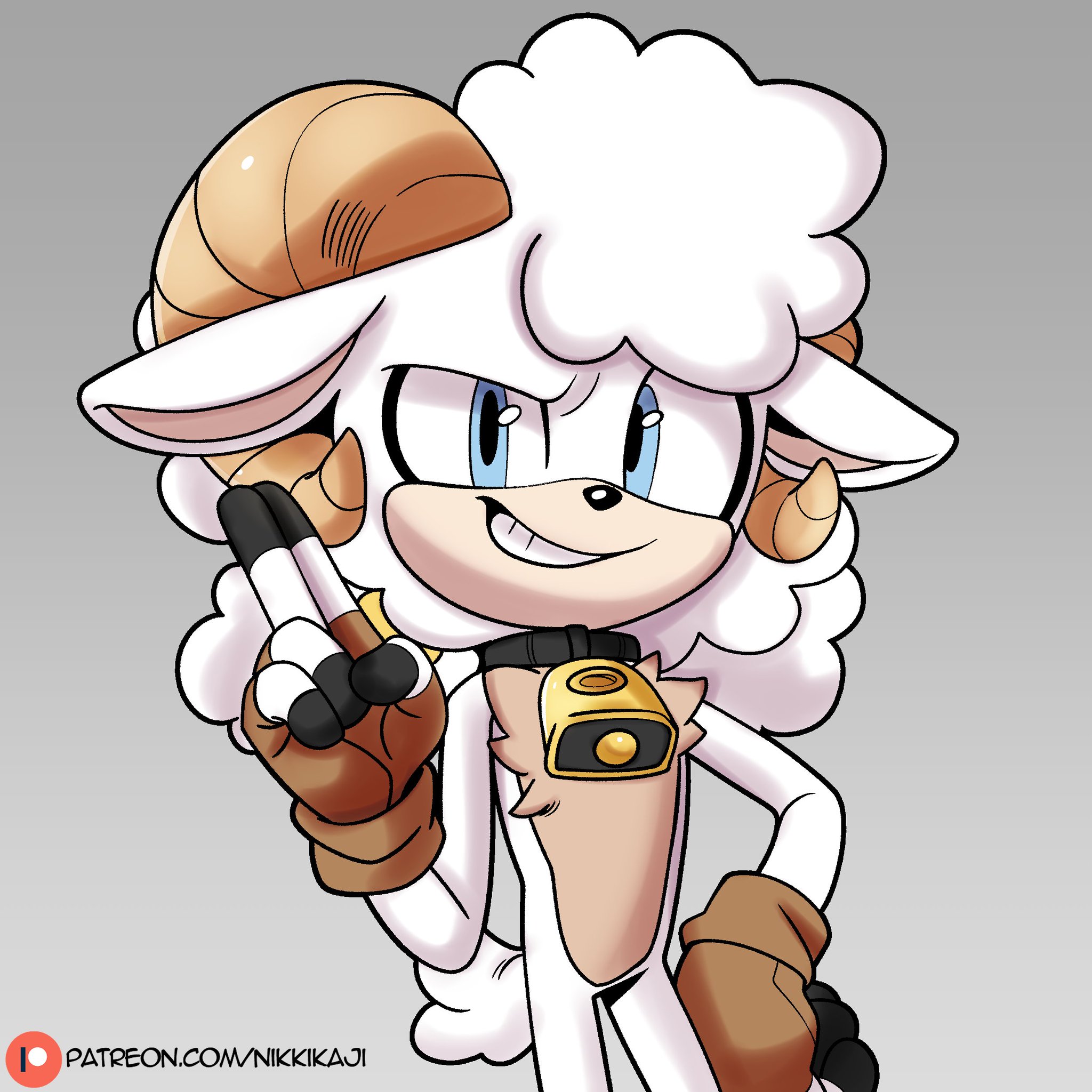 safe35435 artist:nikkikaji12 lanolin the sheep142 sheep38 20252818 alternate outfit1018 bell17 brown gloves76 chest fluff717 collar76 fingerless gloves716 gender swap915 gloves1683 grey background2259 hand on hip902 looking at viewer7629 simple background14141 smile13109 smiling at viewer761 solo16023 standing10091