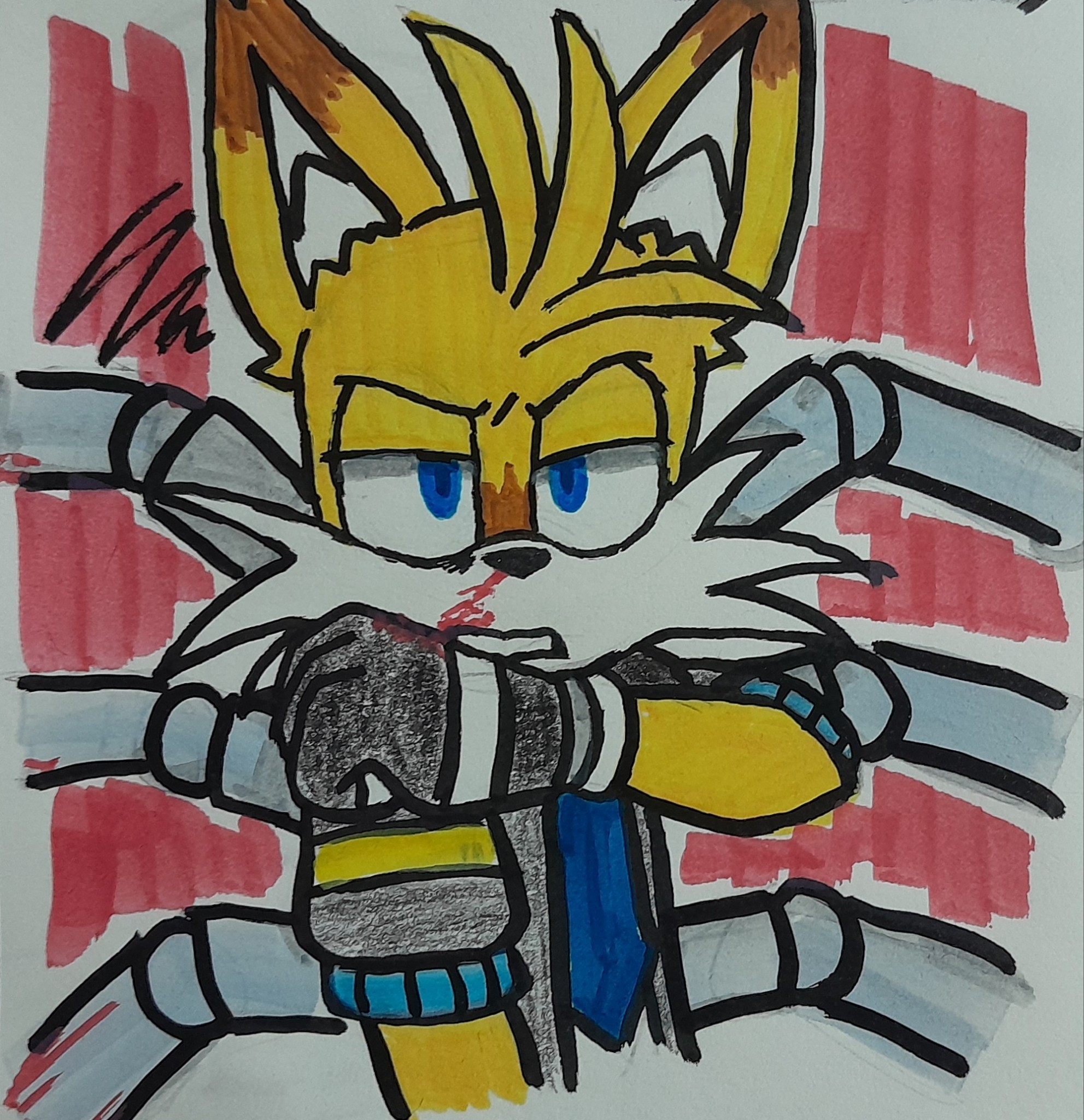 safe36089 artist:appleandcinnamon4 miles "tails" prower8995 nine336 fox2514 sonic prime647 20253146 bleeding226 blood577 clenched teeth1823 ear fluff690 frown4476 fur markings178 injured198 lidded eyes3834 looking at viewer7840 male6202 nosebleed55 solo16517 solo male406 squiggle12 traditional media1537 wiping face8