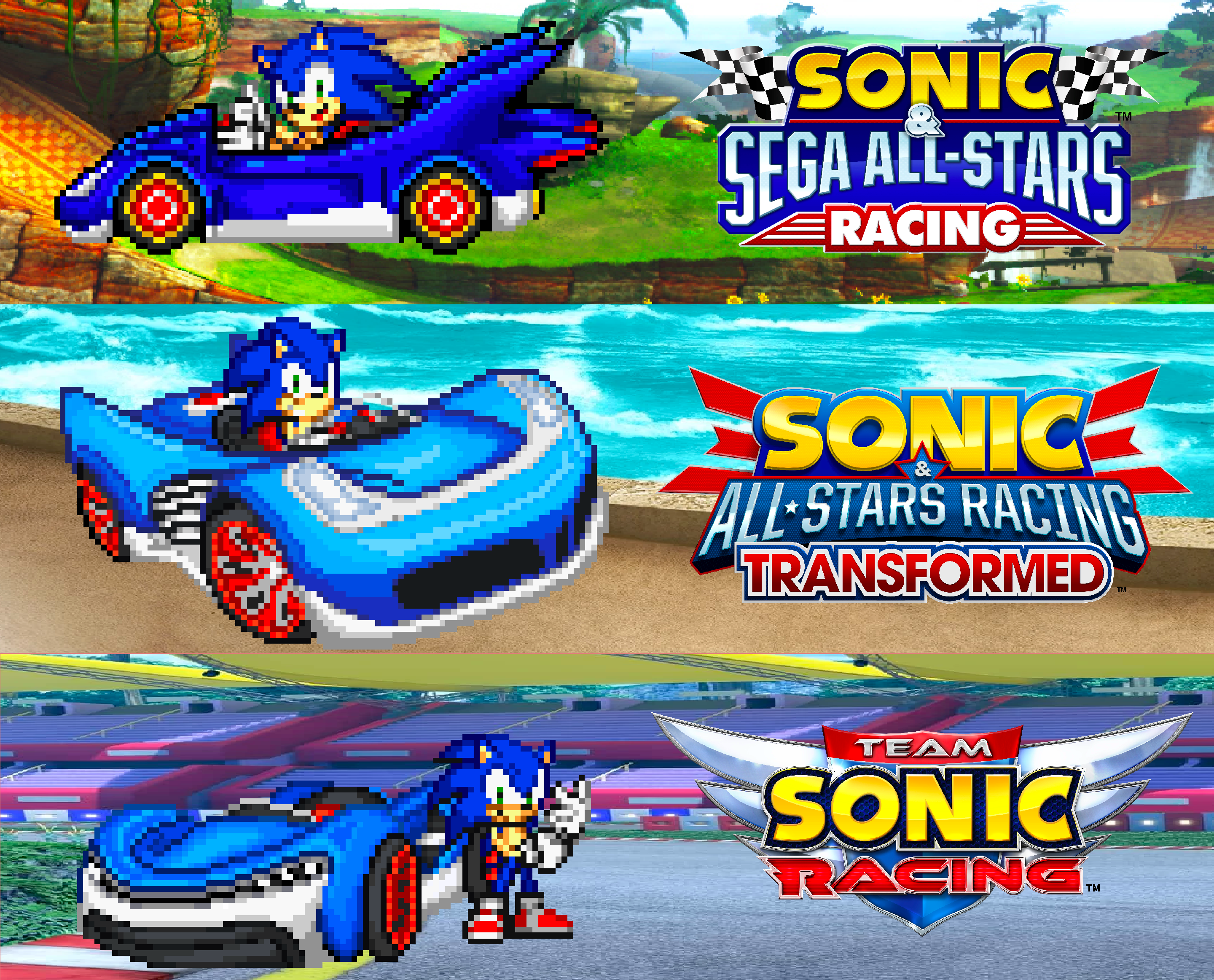 Finally, its complete. I made all 3 of the Sonic racing games that I have played back then and at today's time. This was a long process to make, I started with Team Sonic Racing, then Sega All-Stars to Transformed. Because since I already had the pose for TSR, it was a matter of adding the car and that's what I did which took me a long time to make, all of these too so much time last night and today but it was worth making. I'll explain my encounters with these games and how I got my hands on them back then and I'll update the Sonic Art References in the link below so you guys can see it for yourselves.