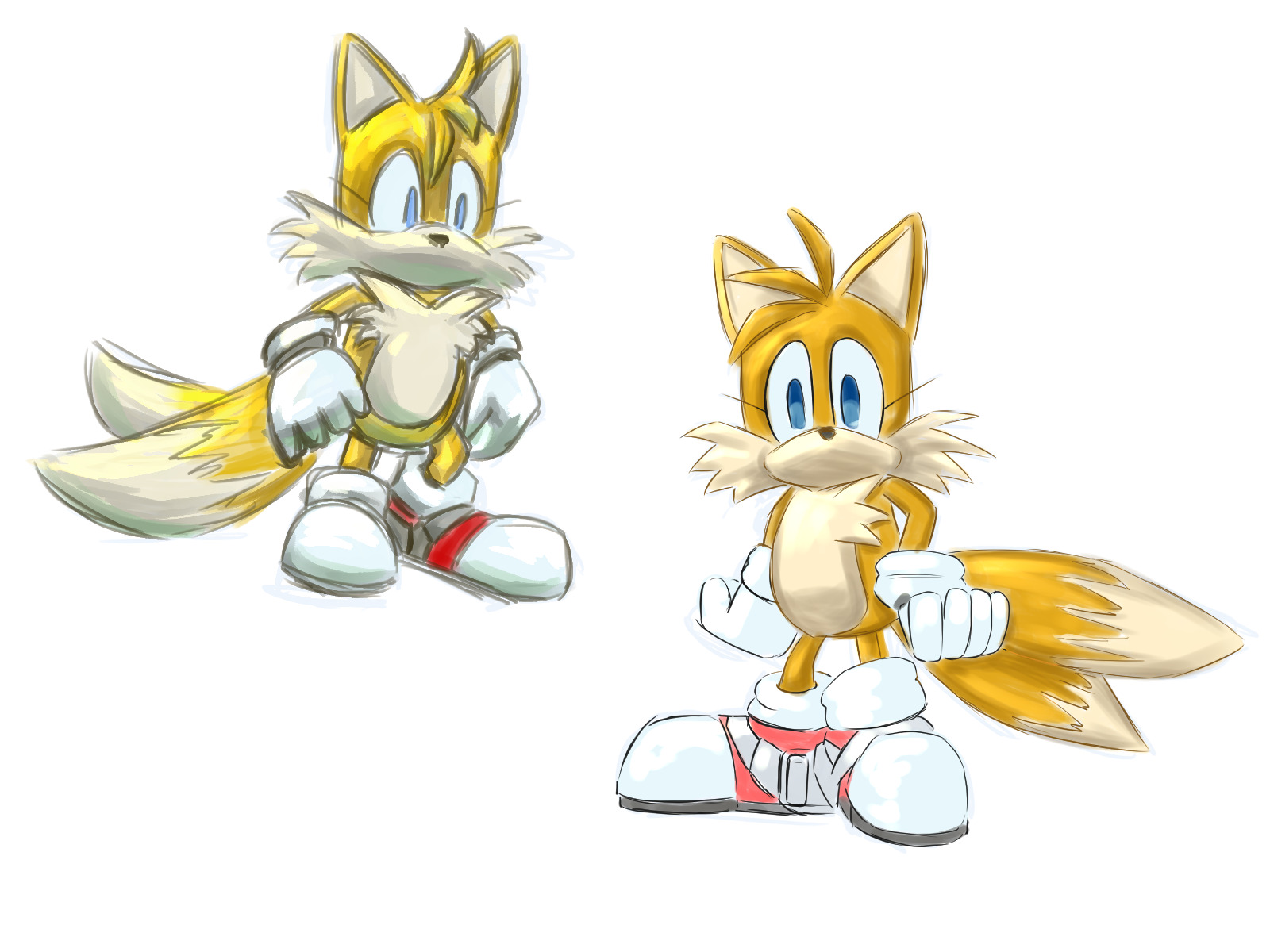 Also have been trying to figure out what to do with Tails's ponytail and how to make it look not weird.
