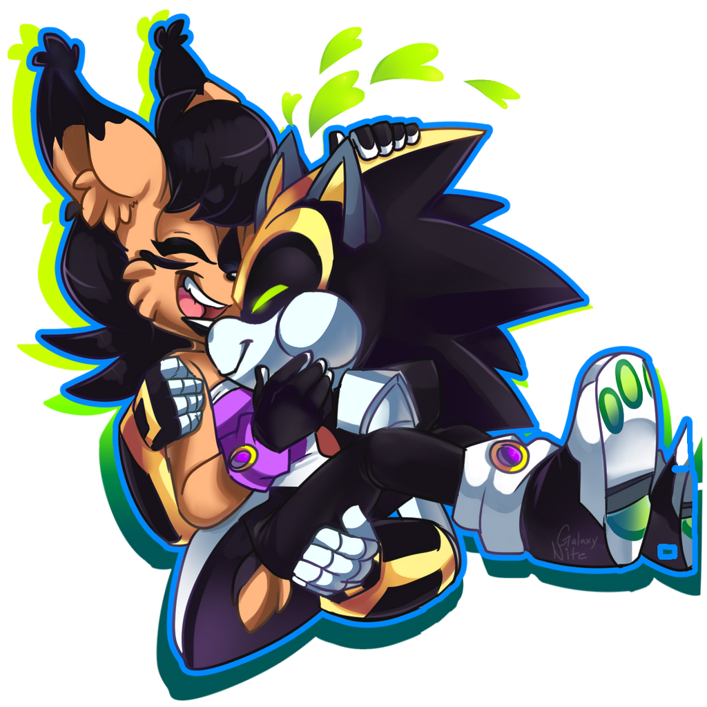 safe37733 artist:galaxynite14 nicole the hololynx342 shard the metal62 lynx113 2017708 blank background9 carrying them768 duo12502 female6379 happy247 heart3258 hololynx85 hugging1260 male6757 robot1055 shardicole26 shipping9974 simple background15572 straight1523