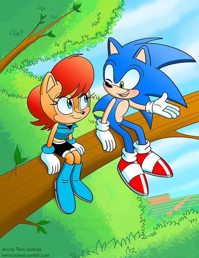 An illustration of Sonic and Sally chatting.