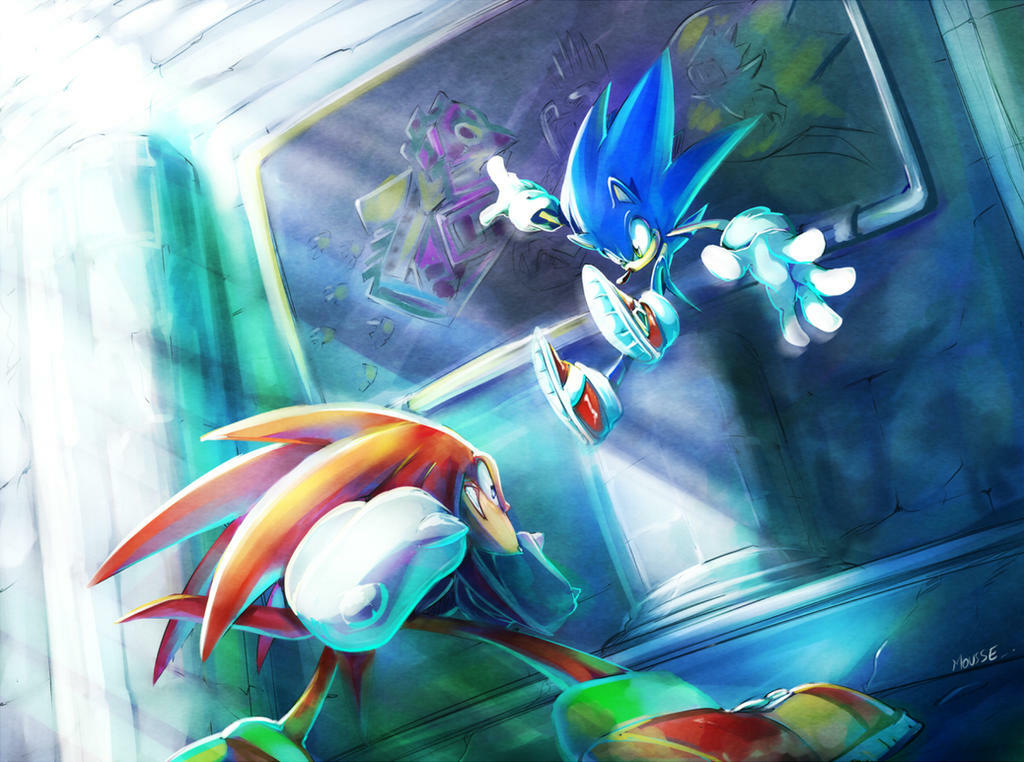 safe39540 artist:evmousser45 knuckles the echidna2428 sonic the hedgehog14602 echidna845 hedgehog8220 2011186 abstract background7407 clenched fists694 clenched teeth1998 duo13572 falling100 fight170 fighting pose77 hidden palace zone (sonic 3)3 lineless566 looking at each other2965 male7464 mid-air885 smile15508 sonic the hedgehog 3101 standing11589 treads306