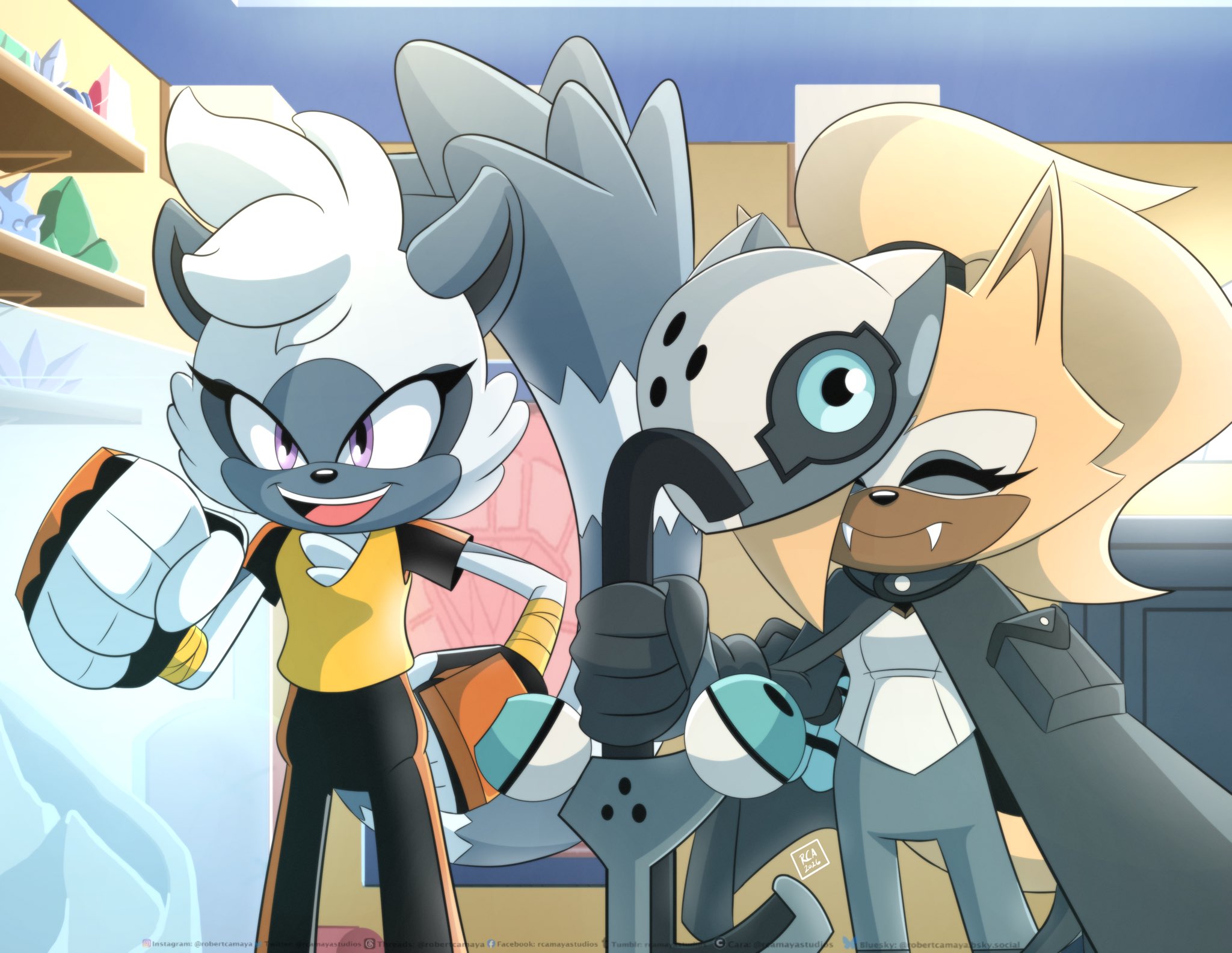 safe39620 artist:rcamayastudios4 tangle the lemur1165 whisper the wolf1193 lemur291 wolf501 2026787 chaotix case files7 clenched fist763 duo13592 eyes closed5046 fangs539 female7304 hair over one eye297 hand on hip1114 holding something4067 indoors456 looking offscreen4751 mouth open6458 standing11627
