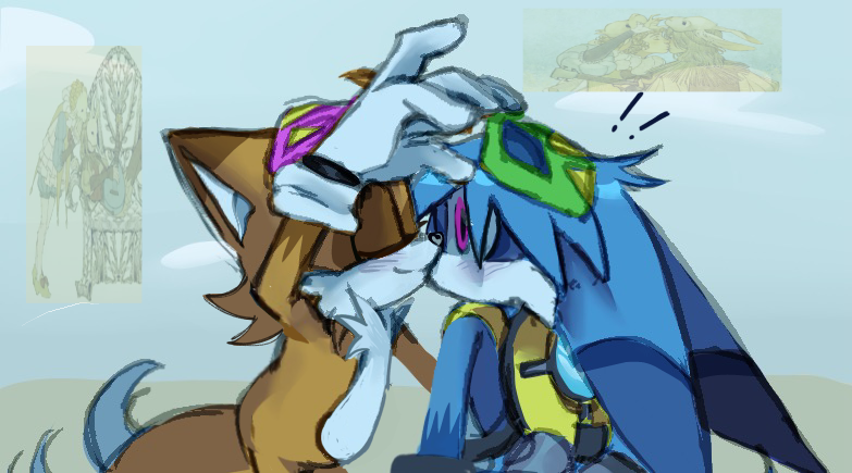 safe39958 artist:skyt9033 kit the fennec576 miles "tails" prower9698 2026931 cute5908 duo13841 exclamation mark458 eyes closed5112 fur markings288 gay5506 kiss1224 kit x tails201 mask79 reference inset566 shipping10912 smile15852 standing11764 surprise kiss96 surprised432