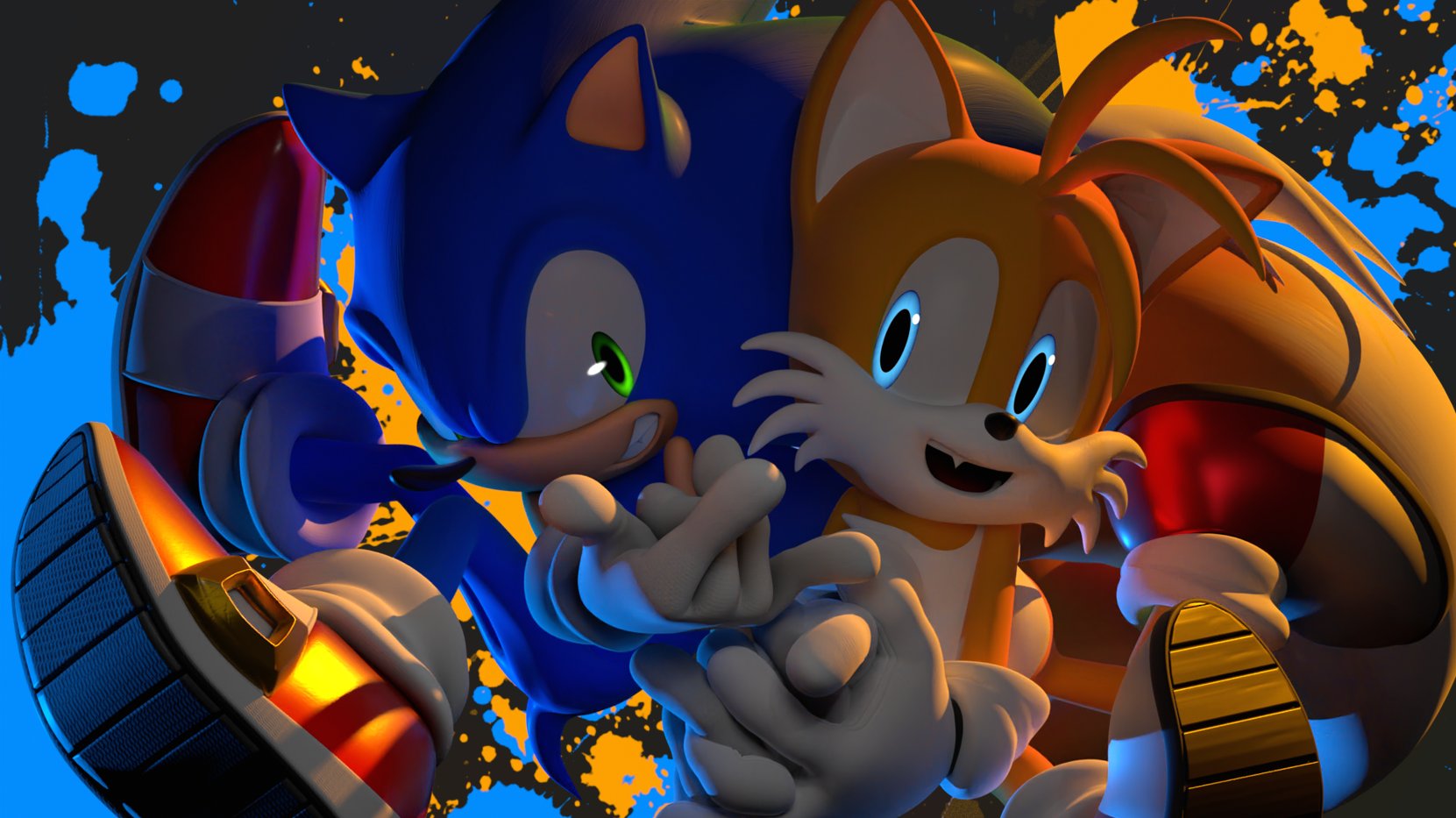 safe34608 artist:dokatzo8 artist:leymi-lopez3 artist:tweetygal151 miles "tails" prower8717 sonic the hedgehog12338 fox2377 hedgehog6640 20252418 3d1135 abstract background6747 duo11077 glowing eyes472 looking at viewer7393 male5845 mouth open5234 one fang1228 paint23 paint splatter8 smile12691 smiling at viewer625