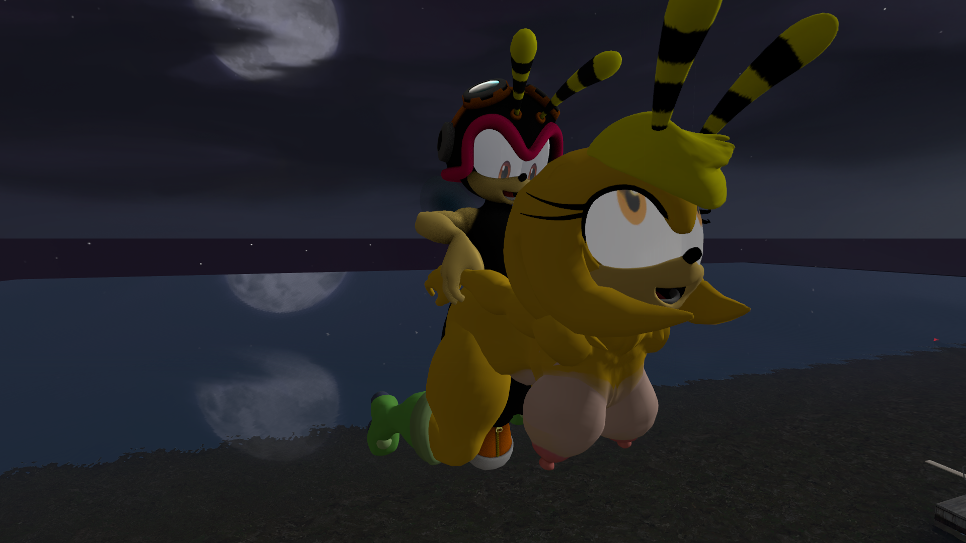 Charmy and Saffron are mating over the lake.