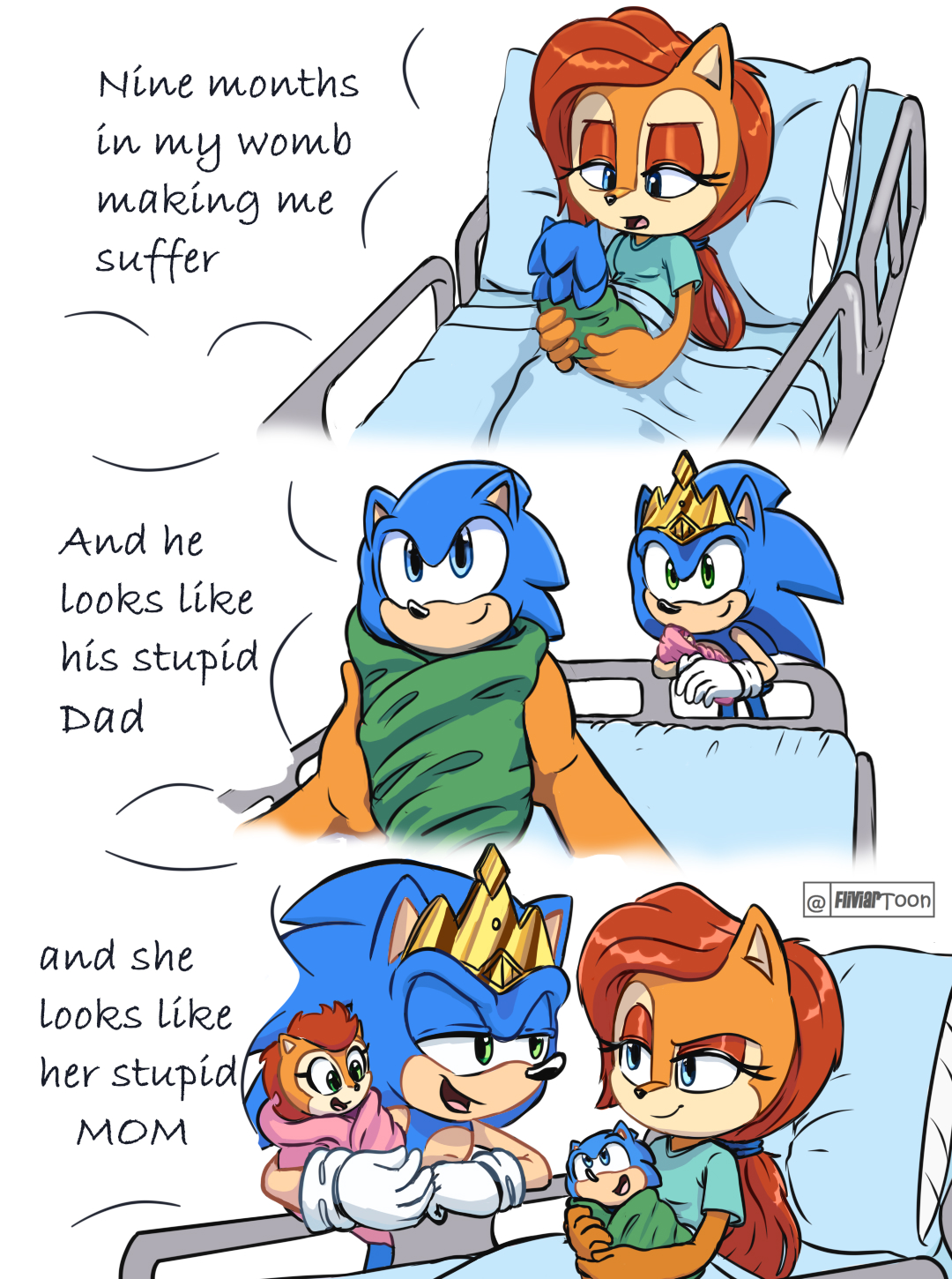 safe35201 artist:fliviartoon12 manik acorn26 sally acorn1128 sonia acorn24 sonic the hedgehog12532 chipmunk429 hedgehog6740 20252670 baby113 carrying them686 comic630 crown88 dialogue2500 english text4005 nine months in my womb6 ponytail120 quartet64 sally x sonic182 shipping9331 straight1120