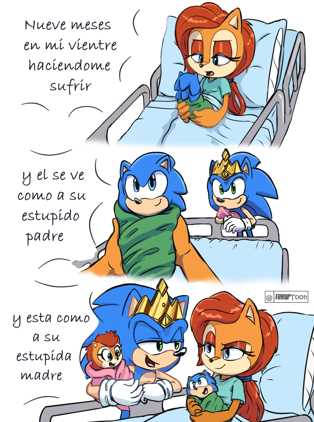 safe35201 artist:fliviartoon12 manik acorn26 sally acorn1128 sonia acorn24 sonic the hedgehog12532 chipmunk429 hedgehog6740 20252670 baby113 carrying them686 comic630 crown88 dialogue2500 nine months in my womb6 ponytail120 quartet64 sally x sonic182 shipping9331 spanish text51 straight1120