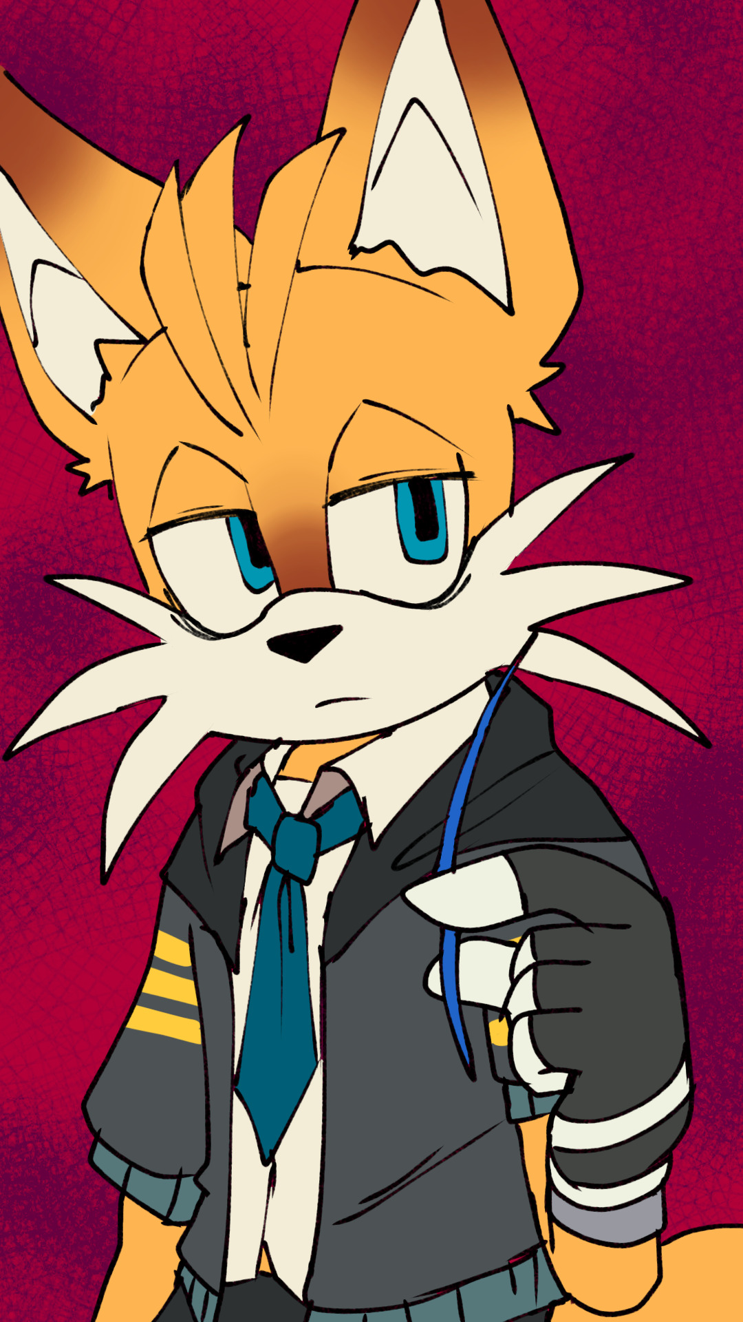 safe36090 artist:appleandcinnamon4 miles "tails" prower8996 nine336 fox2515 sonic prime647 20253146 clothes1586 ear fluff690 flat colors1228 frown4476 fur markings178 holding something3214 implied sonic47 jacket1023 looking offscreen4185 male6203 quill5 shirt706 solo16517 solo male406 standing10321 tie48