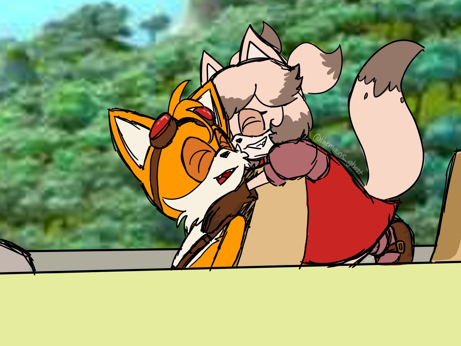 safe36354 artist:tireddemonboysnearyou2 miles "tails" prower9023 zooey the fox81 fox2546 20253282 arctic fox22 belt431 brown gloves81 brown shoes33 dress753 duo11852 eyes closed4552 fangs482 female6020 flat colors1251 gloves1733 goggles804 goggles on head343 hugging1197 hugging from behind159 male6313 plane10 redesign846 redraw1331 screenshot background60 shoes1317 signature5940 smile13557 sonic boom (tv)515