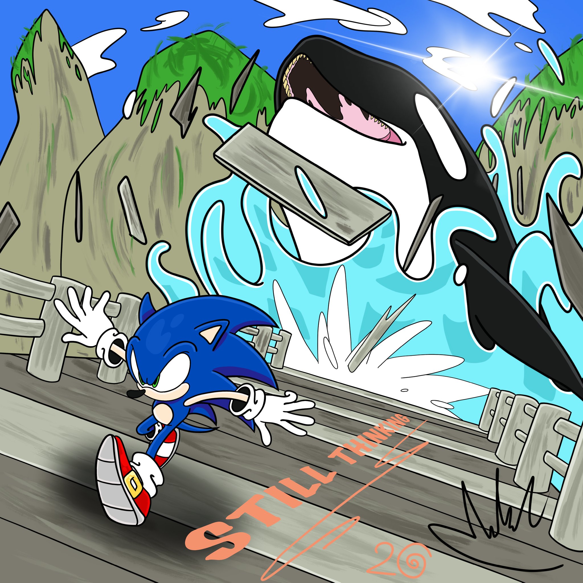 safe36428 artist:biolizard0247 sonic the hedgehog13161 hedgehog7270 sonic adventure194 2019698 bridge26 daytime842 dreamcast logo10 duo11897 emerald coast9 english text4153 killer whale1 literal animal229 male6339 orca7 outdoors1516 running598 water437 whale2