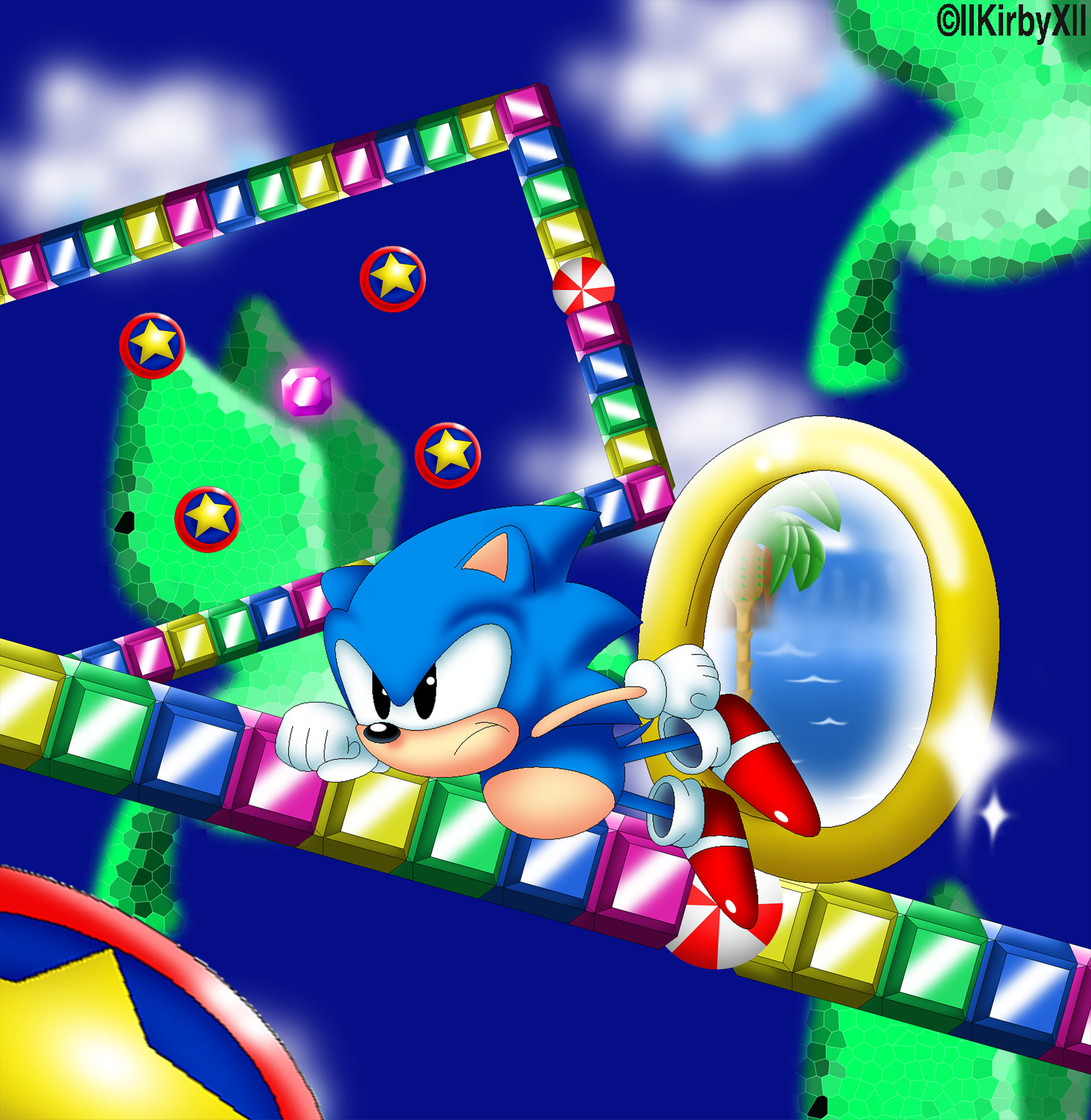 safe36577 artist:jdoesstuff5 sonic the hedgehog13246 bird408 hedgehog7330 sonic the hedgehog (1991)40 2011147 abstract background6966 bumper7 chaos emerald581 classic sonic977 clenched fists628 frown4532 looking offscreen4220 male6420 mid-air772 palm tree223 portal14 ring552 solo16702 solo male470 sparkles1005 special stage19
