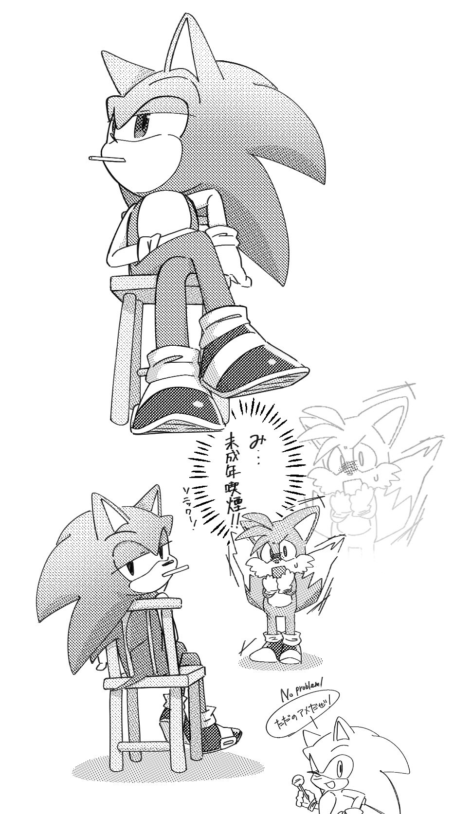 safe36584 artist:oudooooon42748 miles "tails" prower9060 sonic the hedgehog13250 20253353 candy32 chair86 comic694 duo11967 food415 greyscale868 japanese text395 lollipop40 looking at them2065 monochrome2075 mouth open5496 simple background14899 speech bubble1360 standing10470 white background7272