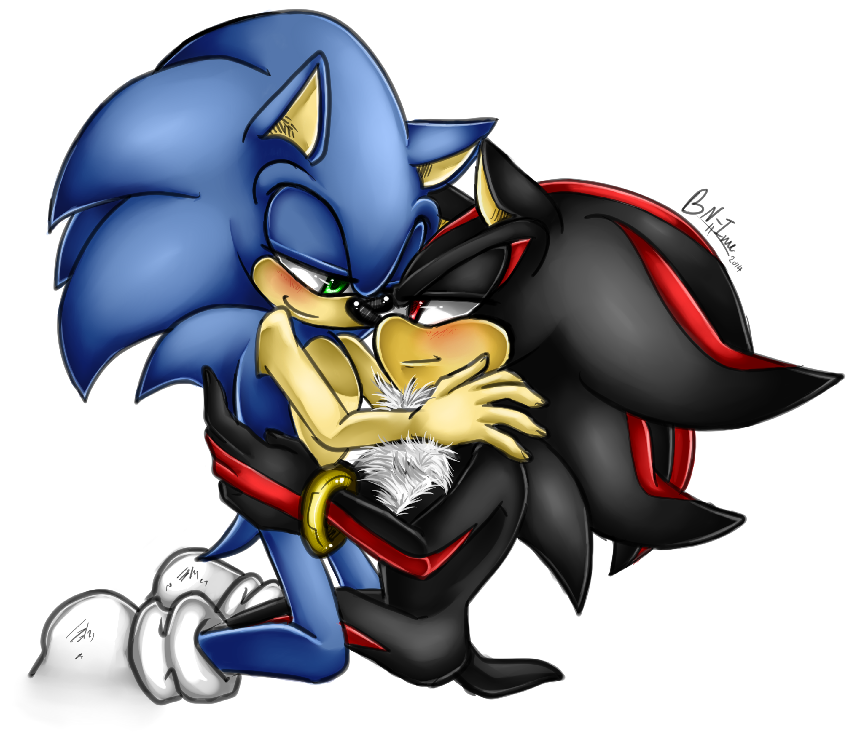 safe36863 artist:blueneedle-inu9 shadow the hedgehog6132 sonic the hedgehog13416 2014244 blushing6517 duo12115 gay5127 gloves off408 kneeling512 lidded eyes3932 looking at each other2674 shadow x sonic1741 shipping9766 shoes off101 signature6008 simple background15044 sitting2234 smile13786 smiling at each other105 white background7370