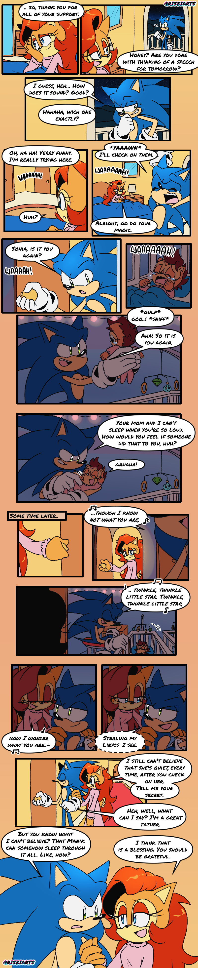 safe37197 artist:risziarts137 sally acorn1302 sonia acorn41 sonic the hedgehog13589 chipmunk670 hedgehog7433 20232572 baby130 carrying them751 comic744 crying602 dialogue2619 english text4243 father and daughter70 female6167 king sonic40 laughing153 male6542 queen sally acorn27 sally x sonic352 shipping9826 singing74 speech bubble1431 straight1442 tears508 tickling2 trio1768