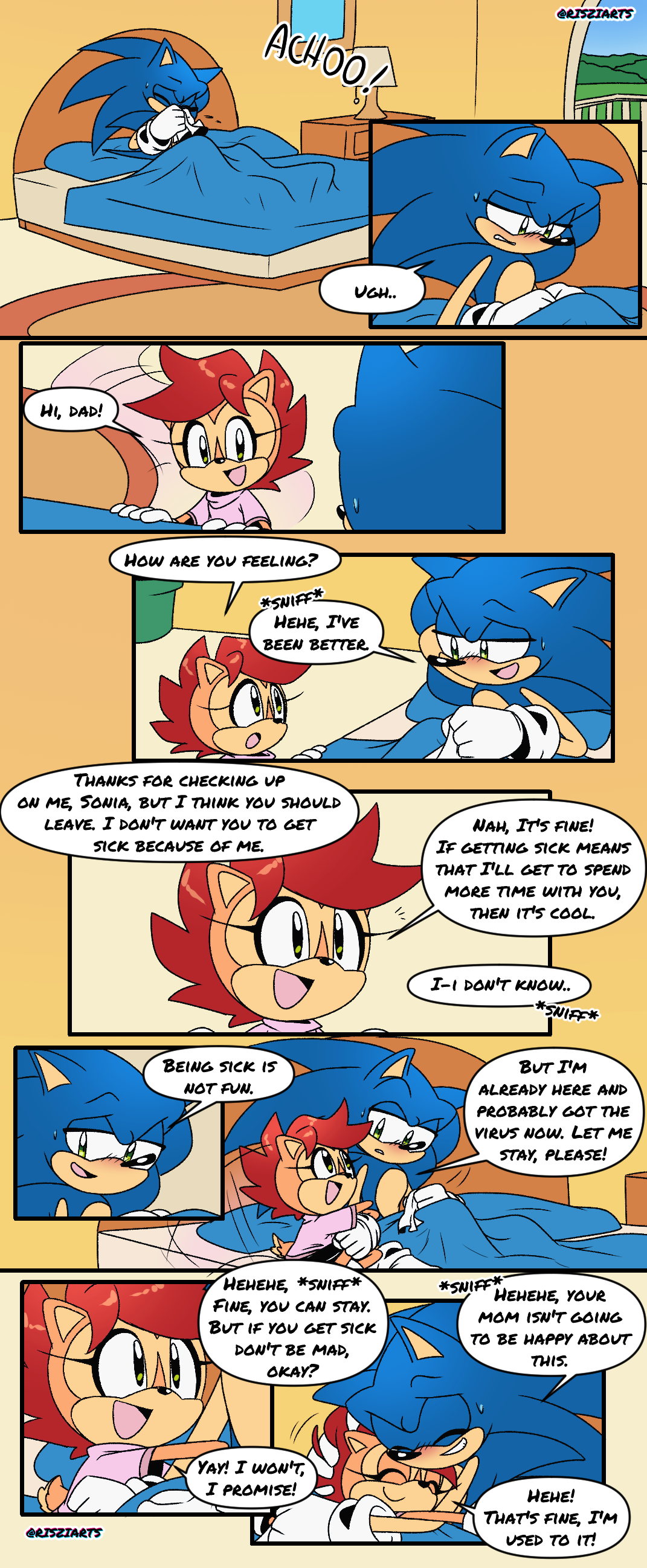 safe37198 artist:risziarts137 sonia acorn41 sonic the hedgehog13591 chipmunk670 hedgehog7433 20232572 bed298 bedroom27 blanket57 child395 comic745 dialogue2619 duo12266 english text4244 father and child59 father and daughter70 female6167 hugging1239 king sonic40 male6543 parent:sally27 parent:sonic227 parents:sonally5 sick8 sick cold1 sitting2276 speech bubble1432