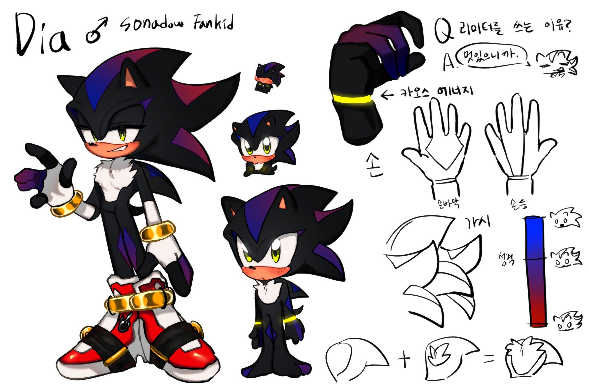 safe37787 artist:tamjeong_sonic353 shadow the hedgehog6372 sonic the hedgehog13789 oc2567 oc:dia1 20253816 child396 fankid374 gloves off420 korean text280 lidded eyes4085 oc only476 parent:shadow183 parent:sonic228 parents:sonadow143 simple background15608 smile14245 solo17259 standing10976 white background7687