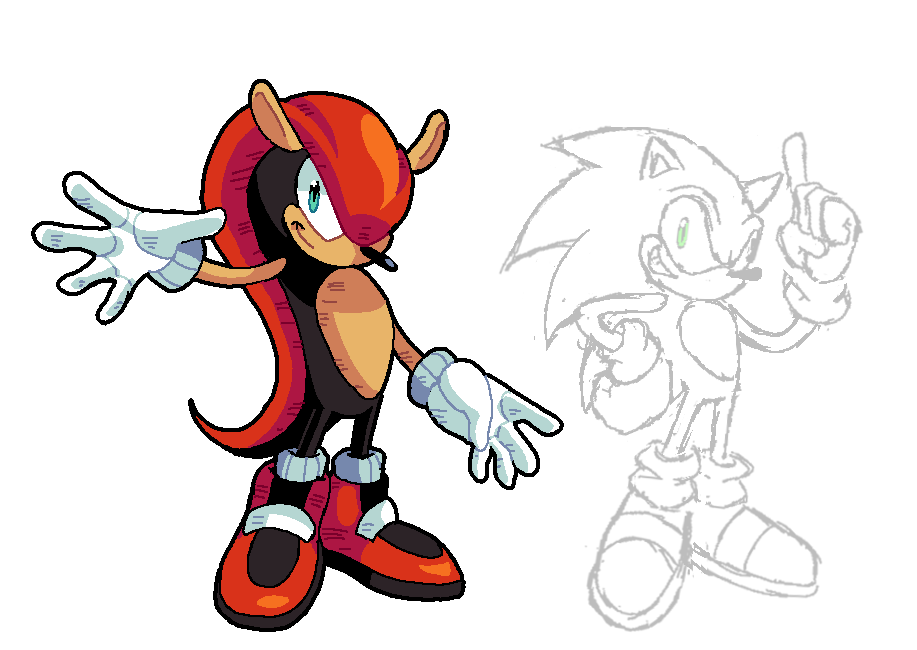 drew a modern mighty design (and a sonic for reference) bc i think the more official ones SUCK !!!!