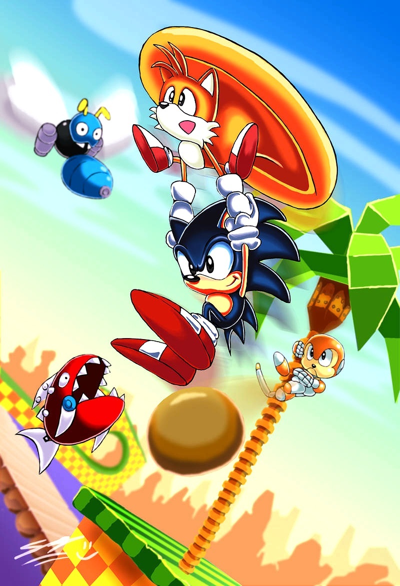 safe38486 artist:sketchiegambit2 buzz bomber22 coconuts28 miles "tails" prower9410 sonic the hedgehog14125 green hill zone177 2011163 badnik109 bridge30 carrying them792 chopper12 classic sonic1031 classic tails607 clouds978 coconut22 daytime985 duo focus115 flapping wings74 flying1290 grass804 group1431 holding them1024 loop98 mid-air825 outdoors1726 palm tree238 robot1085 signature6228 spinning tails397 treads251 tree464 water498