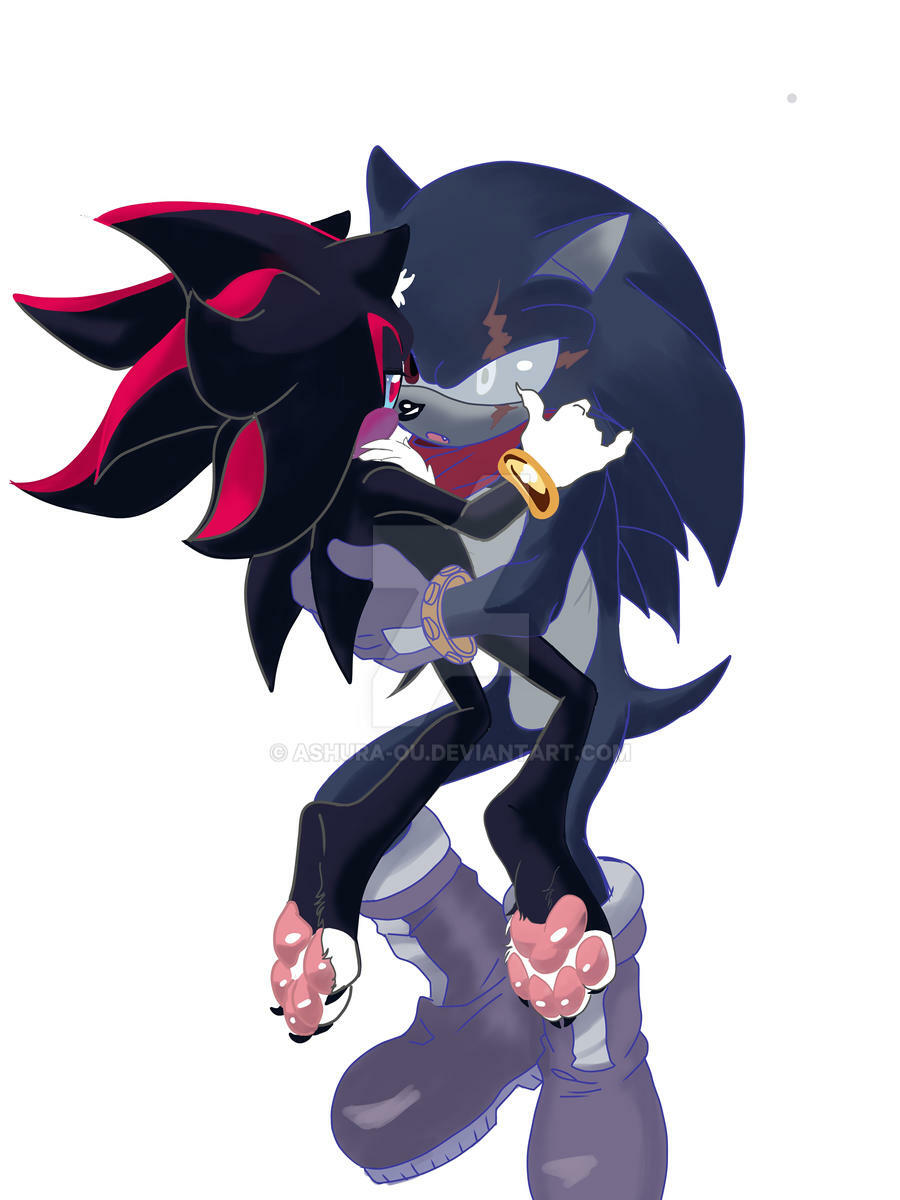 safe38615 artist:ashura-ou4 shadow the hedgehog6552 2026470 barefoot498 deviantart watermark201 duo13004 gay5317 height difference26 holding each other1106 looking at each other2849 obtrusive watermark206 pawpads268 paws244 shadow x terios3 shipping10324 simple background16142 standing11225 terios the hedgehog54 watermark622 white background7952