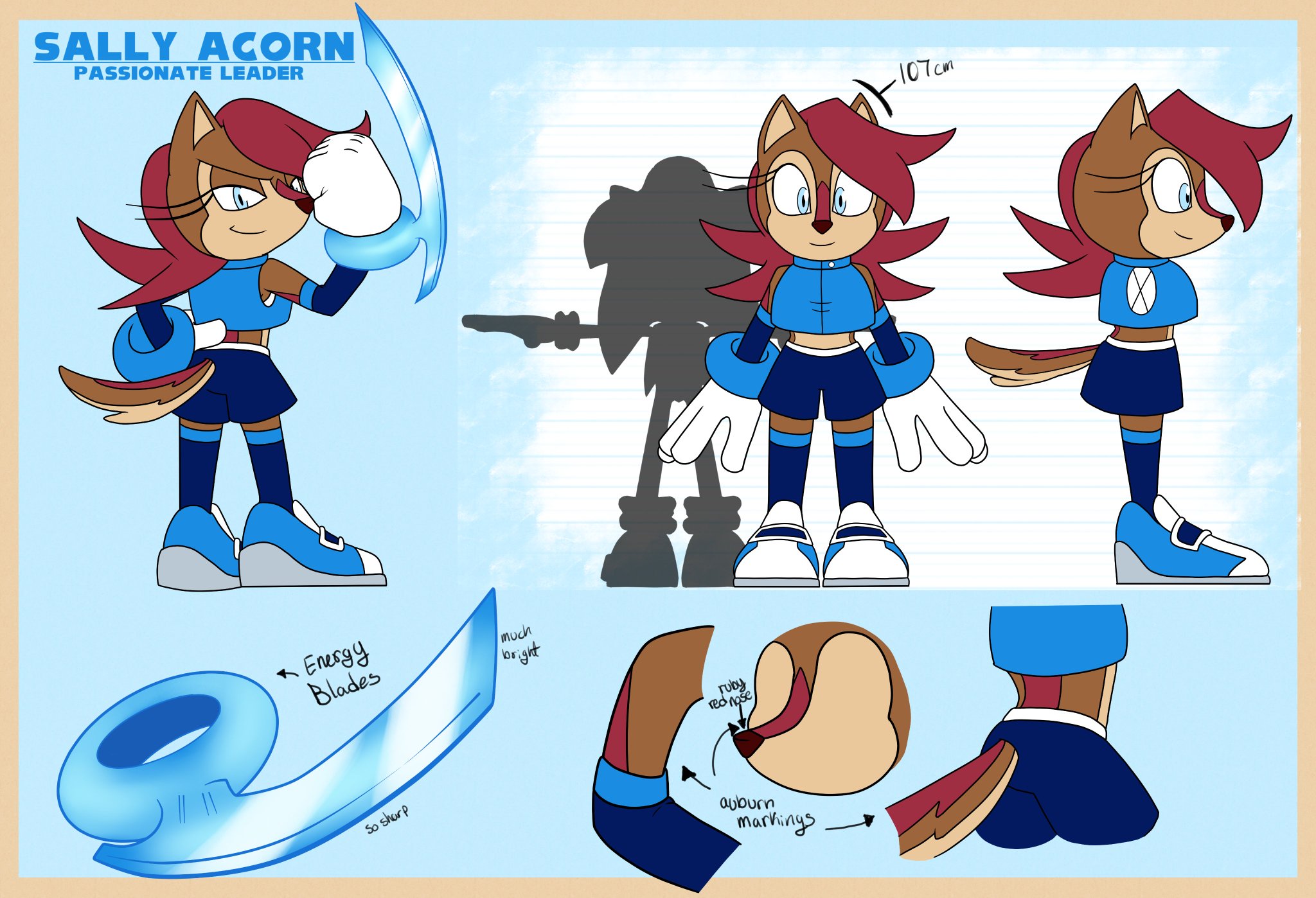 I did a Sally model sheet as she would be in the current Sonic lore (IDW and the Games).