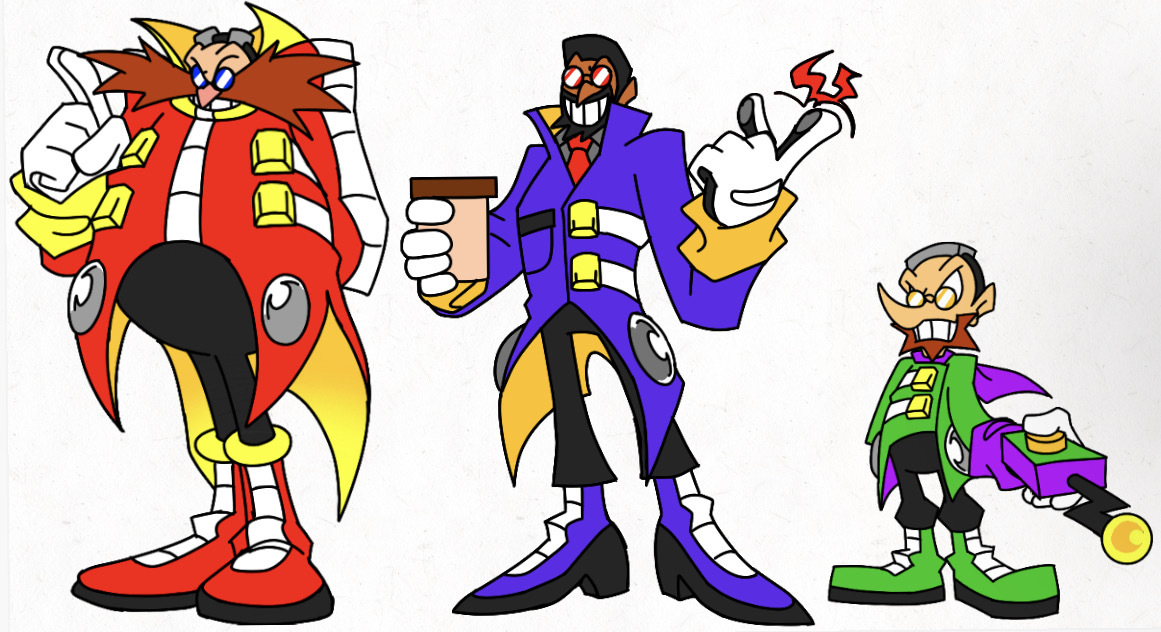 safe38912 artist:calebartboy1516 agent stone101 robotnik755 snively robotnik28 human2236 20244545 clenched teeth1939 coffee76 drink148 finger snap13 holding something3852 looking offscreen4553 pointing1212 redesign900 remote controller34 simple background16315 smile14939 standing11343 trio1884 white background8027