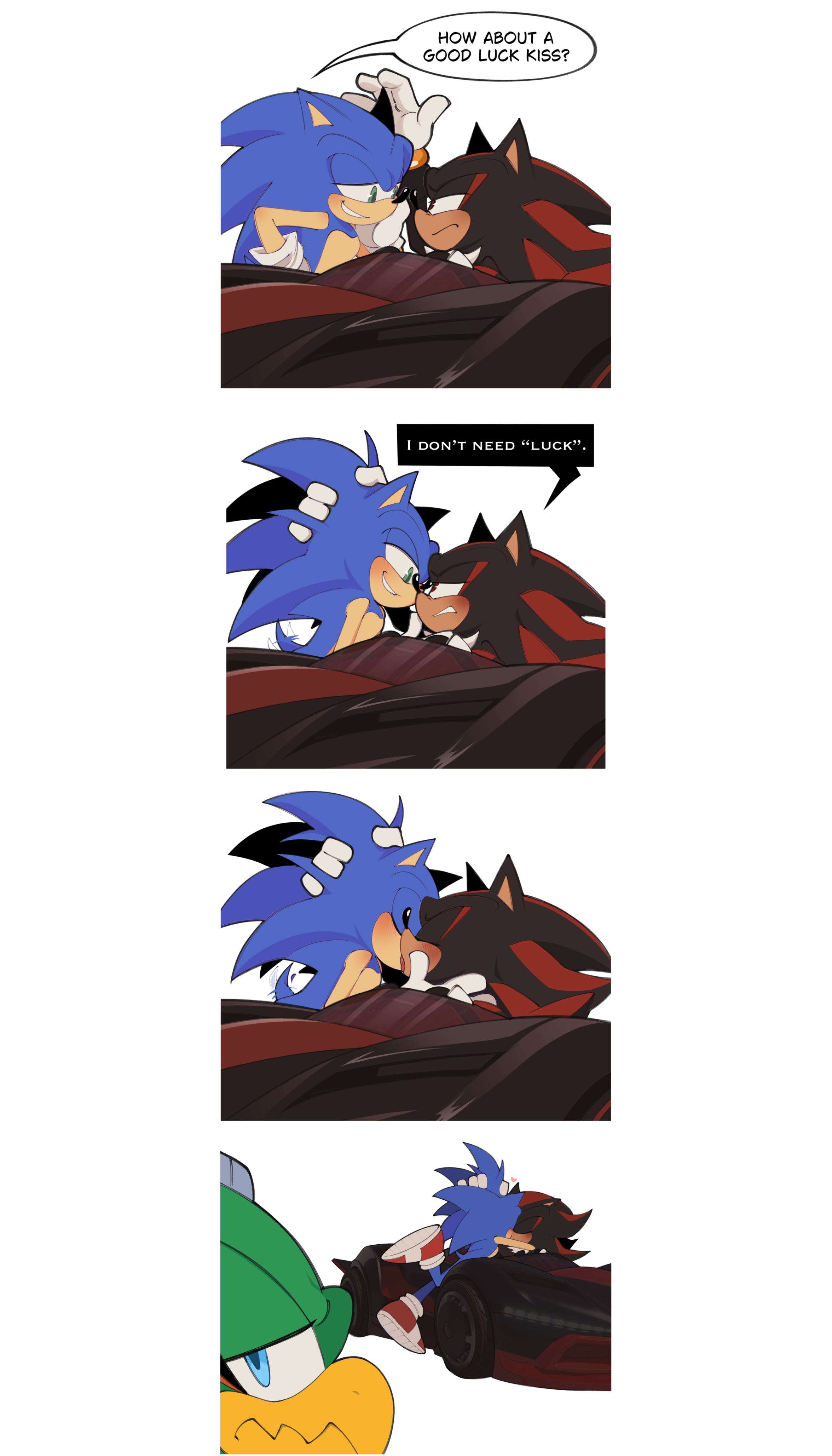 safe39273 artist:tenderandmilder8 jet the hawk341 shadow the hedgehog6686 sonic the hedgehog14479 anonymous editor17 blushing7037 car76 comic877 dialogue2842 edit622 english text4639 gay5430 grabbing26 holding each other1152 kiss1184 shadow x sonic1879 shipping10619 sonic racing crossworlds56 stitched35 text966 third wheel14 trio1925 vehicle75