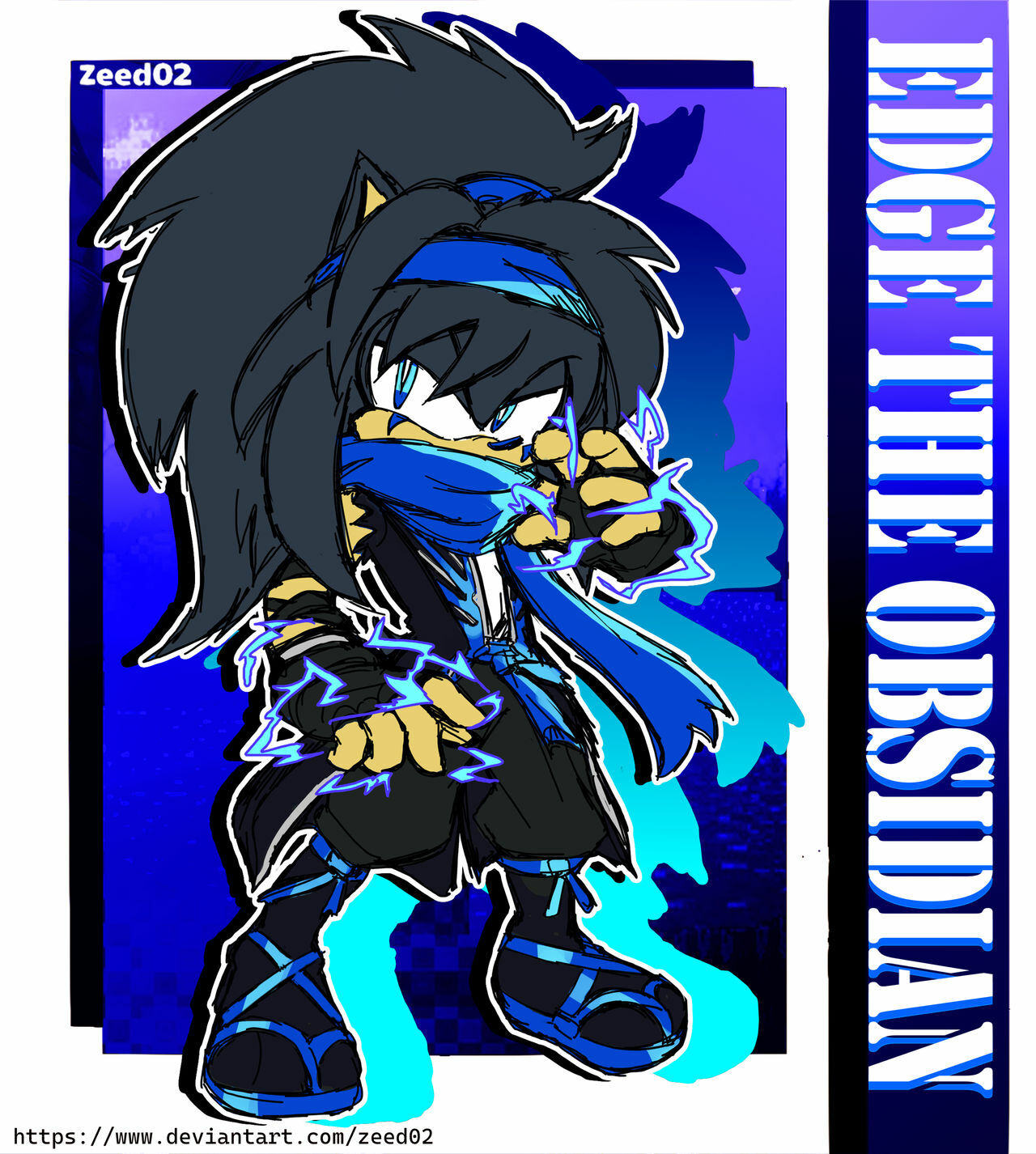 safe39616 artist:zeed_0261 oc2711 oc:edge the obsidian4 hedgehog8271 2026786 character name1151 electricity313 english text4699 flat colors1523 lidded eyes4417 long hair74 looking at viewer9119 male7520 ninja outfit12 oc only572 outline2060 scarf611 signature6426 solo18304 standing11627 text1017