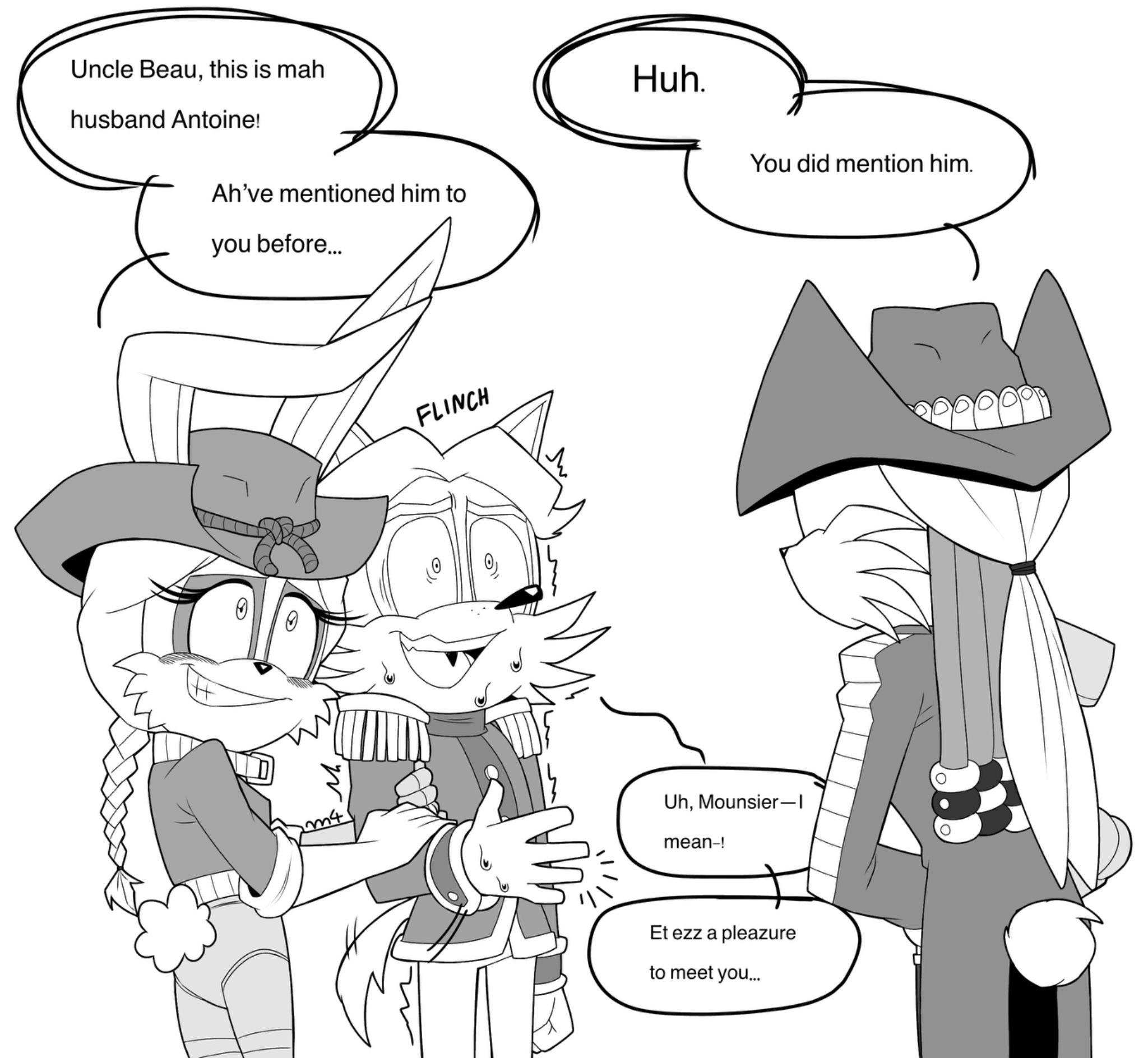 Bunnie and Antoine are one of my favorite couples in the comics (and tbh in the franchise itself) yet I barely draw them together, so I fixed that immediately! UvU and to complement, I drew Beauregard being frenchphobic against poor Antwan lol