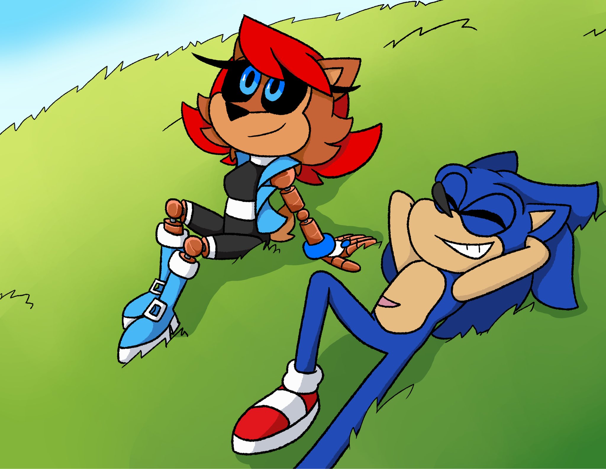 safe39809 artist:kittytale6 sally acorn1763 sonic the hedgehog14690 chipmunk1161 hedgehog8379 2026883 arms behind head53 daytime1118 duo13701 female7388 grass881 hill23 looking offscreen4820 looking up699 lying down623 male7636 outdoors1887 robot1149 roboticized100 sally x sonic638 sally's ringblader outfit386 scar194 shipping10791 sitting2641 smile15704 straight2016
