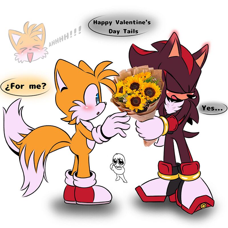 safe40361 artist:jhoycookie22 miles "tails" prower9820 shadow the hedgehog6882 20254417 aaa10 blushing7332 blushing ears252 bouquet50 cute5965 dialogue2987 duo14061 english text4897 flat colors1604 flower749 gay5581 grammatical error15 holding something4316 shadow (lighting)490 shadow x tails247 shipping11092 simple background17378 sunflower110 tailabetes1083 text1180 valentine's day178 white background8543