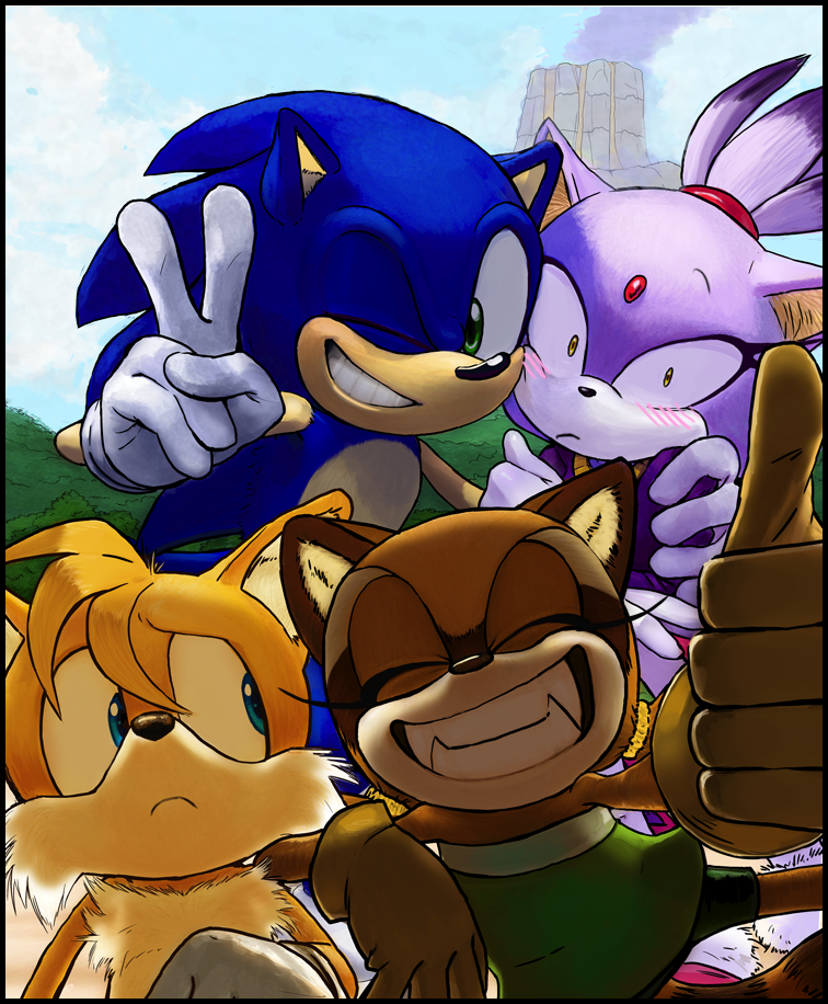 safe40790 artist:knockabiller19 blaze the cat3763 marine the raccoon175 miles "tails" prower9962 sonic the hedgehog15131 cat2886 fox2912 hedgehog8814 raccoon108 sonic rush adventure15 2013285 abstract background7676 arm around shoulders312 blushing7452 daytime1256 eyes closed5281 female7921 frown5366 group1579 leaning on them89 looking at them2552 looking at viewer9822 male8224 outdoors2013 selfie126 shrunken pupils473 smile16580 smoke89 standing12077 thumbs up439 v sign1205 volcano3 wink1323