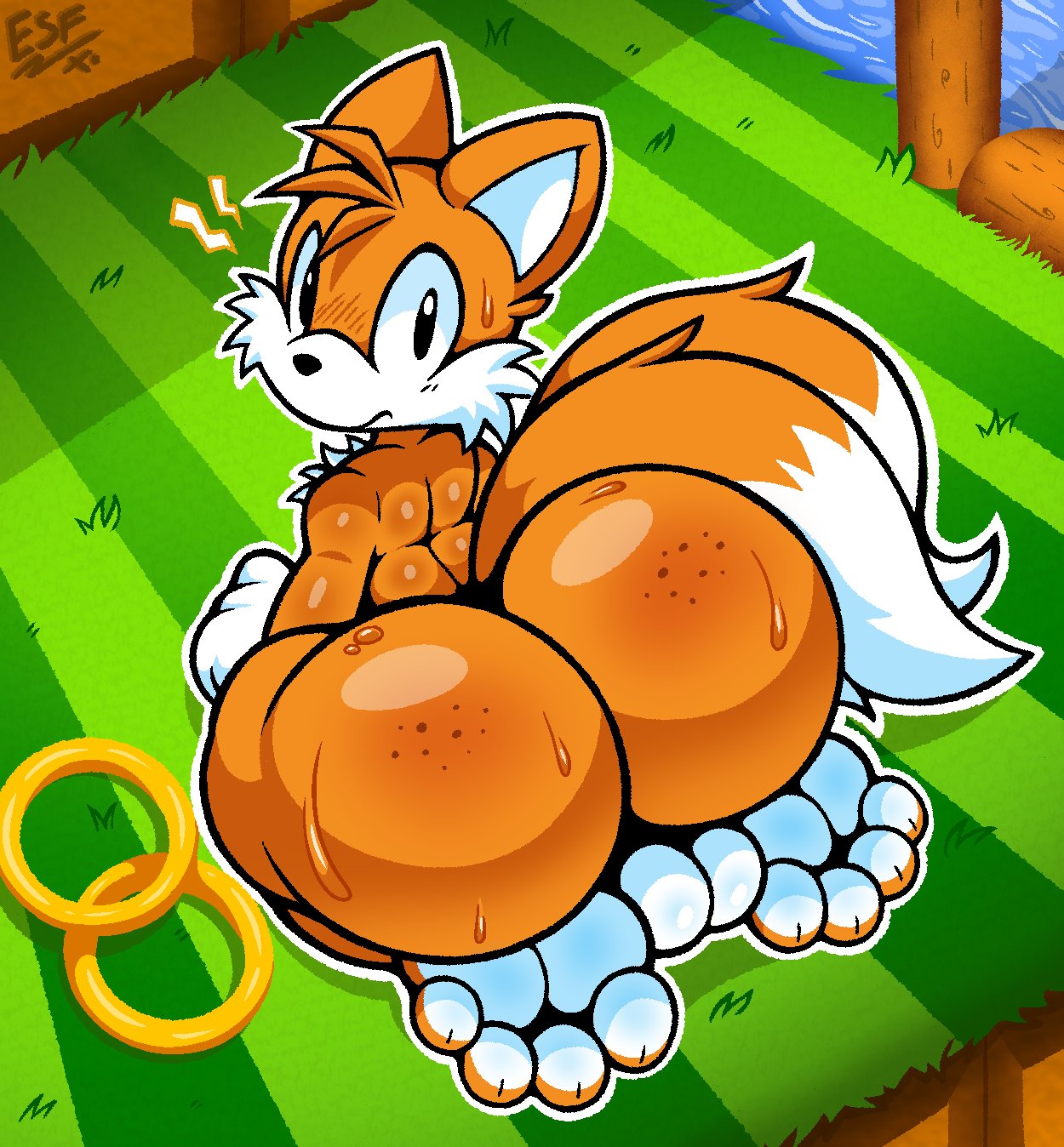 questionable559 artist:electricsnowfox1 miles "tails" prower9949 green hill zone190 abstract background7672 barefoot597 bootyfull tails62 butt739 chest fluff851 daytime1247 exhibitionism8 freckles228 frown5351 grass933 kneeling652 looking at viewer9794 looking back828 looking back at viewer481 male8177 outdoors2009 outline2230 paws288 ring611 solo19199 stupid sexy tails34 surprised450 sweat241 sweatdrop1410 tail aside17 water620