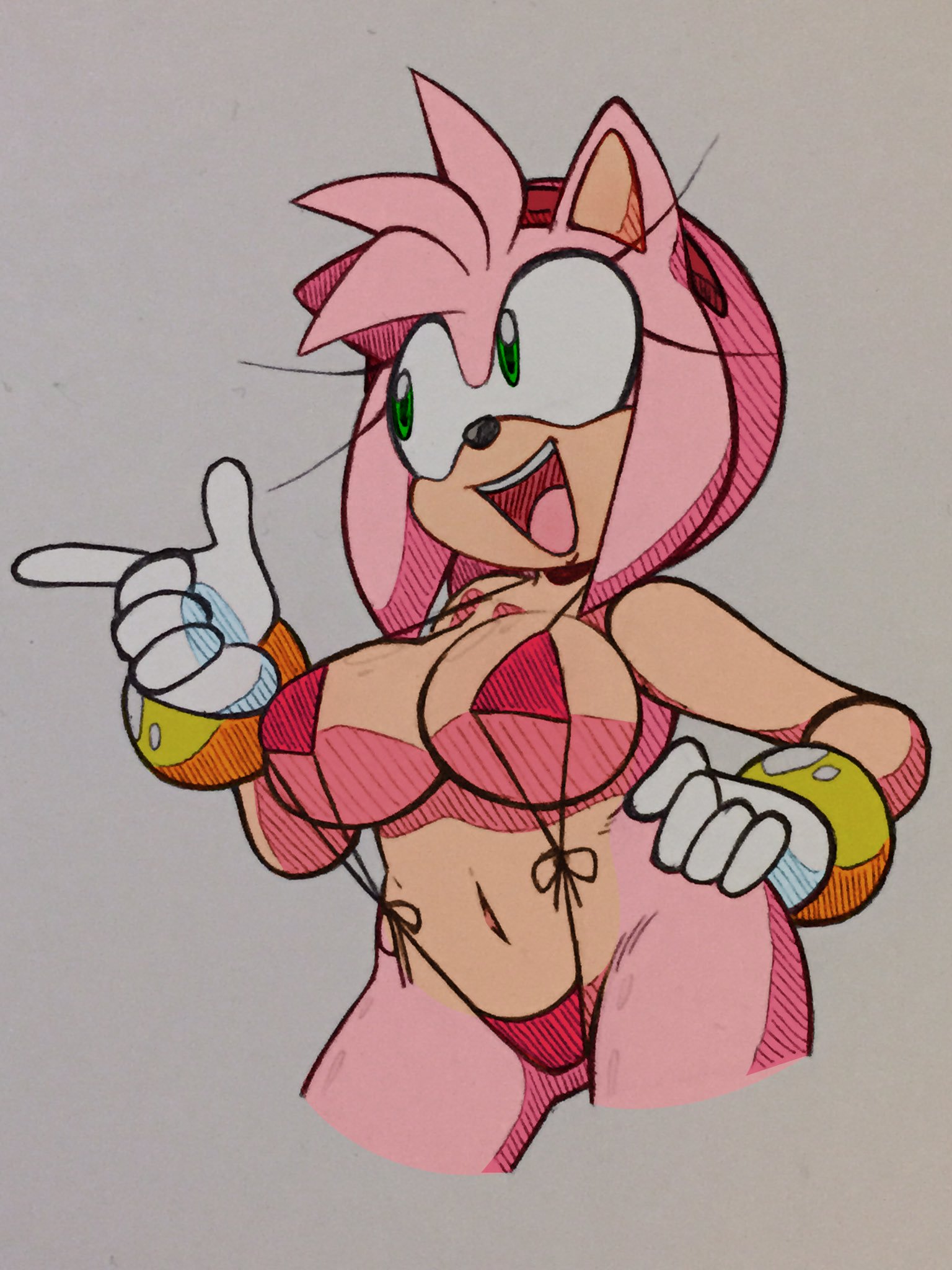 questionable559 artist:fullmetalsketch2 amy rose6182 alternate version762 belly button211 bikini134 breasts971 busty amy67 color edit47 colored version57 edit674 eyelashes1292 female7881 grey background2748 hand on hip1249 mouth open6916 pointing1370 simple background17755 smile16537 solo19199 standing12060
