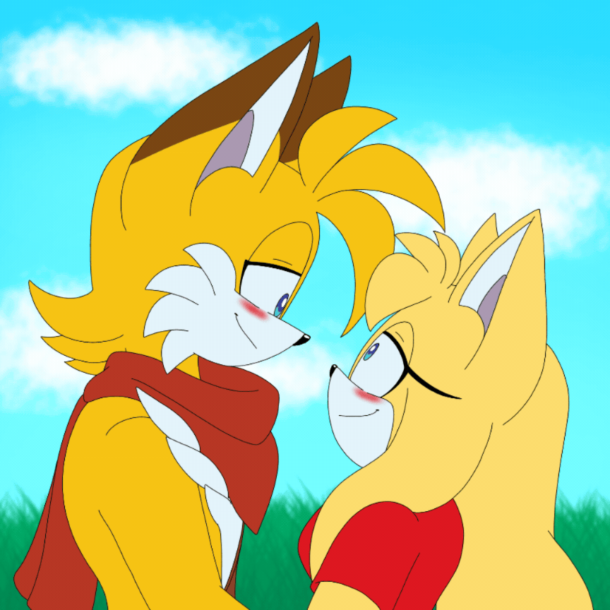 safe41021 artist:laryjoy10 miles "tails" prower9982 zooey the fox96 fox3035 20261235 adult114 animated366 blushing7504 daytime1302 duo14481 female8150 gif236 grass952 grass field30 holding hands1755 kiss on lips50 looking at each other3175 male8412 older507 scarf645 shipping11387 straight2338 tailsey19